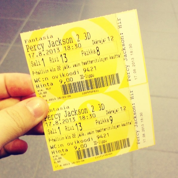 Lauantaina oli jälleen leffailta. Tällä kertaa käytiin katsomassa Percy Jackson: Hirviöiden meri. Kokonaisuutena oli ihan hyvä leffa, joitakin pieniä Potter-vivahteita pääsi mukaan elokuvaan mutta eipä se mitään haitannut. Hirveästi oli tungettu tapahtumaa lyhyeen aikaan ja nyt kun jälkeen päin muistelee, niin elokuvan tapahtumat sotkeentuvat toisiinsa hiukan liian helposti. Onneksi olen lukenut sarjan kaikki kirjat joten olin hiukan kartalla missä mitäkin pitäisi tapahtua.