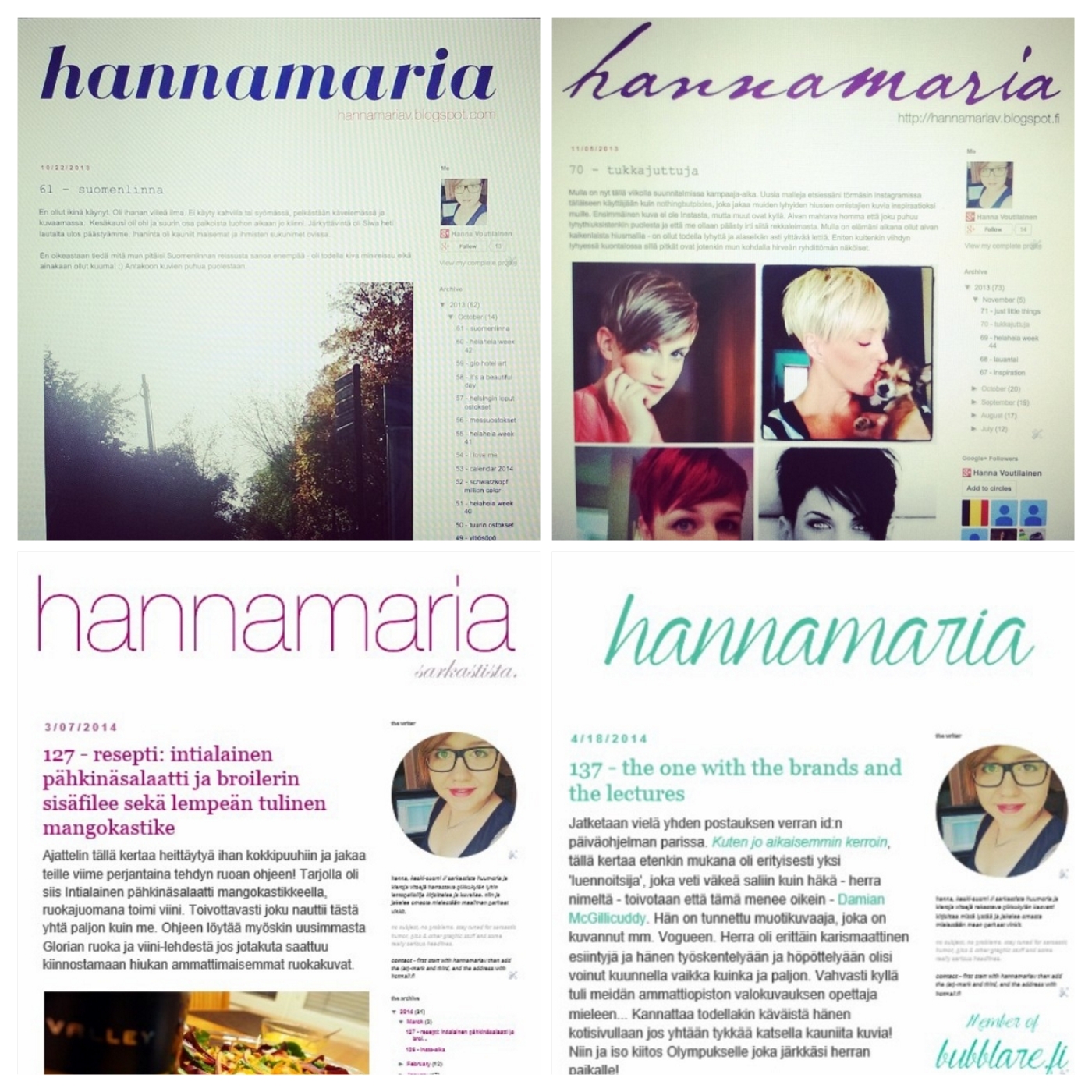 Viime Tammikuussa päivitin ulkoasun nykyiseen muotoonsa, mutta tuolloin hallitsevana värinä oli purppura/violetti värimaailma. Samalla muuttui blogin sivupalkin ulkoasu leveämmäksi ja selkeämmäksi. Myöskin otsikoiden fontti sai kokea pienen muutoksen muututtuaan Georgiaan.