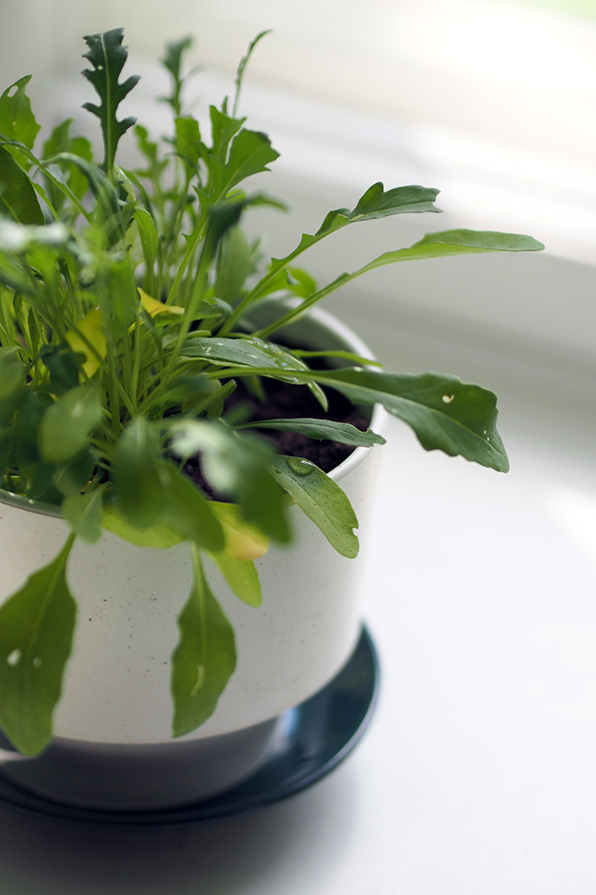 I have a small herb garden on my windowsill. Me, who usually hates everything that needs to be regularly watered and been taken care of. I’ve even killed a cactus… But, it was a gift and I’m really happy to have a pot of basil and a pot of arugula. Though the arugula looks like it has a bug in it so we can’t eat it. I’ve been thinking of replacing it with a jar of mint… I’ll be seeing you, Mister Mojito, in a moment 😉
