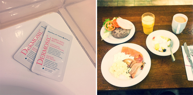 Ette arvaa miten innoissani olin kun huomasin huoneessani olleen kylpyammeen 😀 En ole ikuisuuksiin käynyt uimassa saatika kylvyssä, joten oli ihan mahtavaa käydä kaupasta poimimassa iltapalaa, hiukan siideriä ja hypätä kylpyyn. Ja seuraavan aamun aamupala oli aivan mahtava, Sokos Hotellit ei kyllä sen suhteen petä. Huoneesta ja hotellista on tulossa vielä erillistä postausta kunnon kuvien kera!