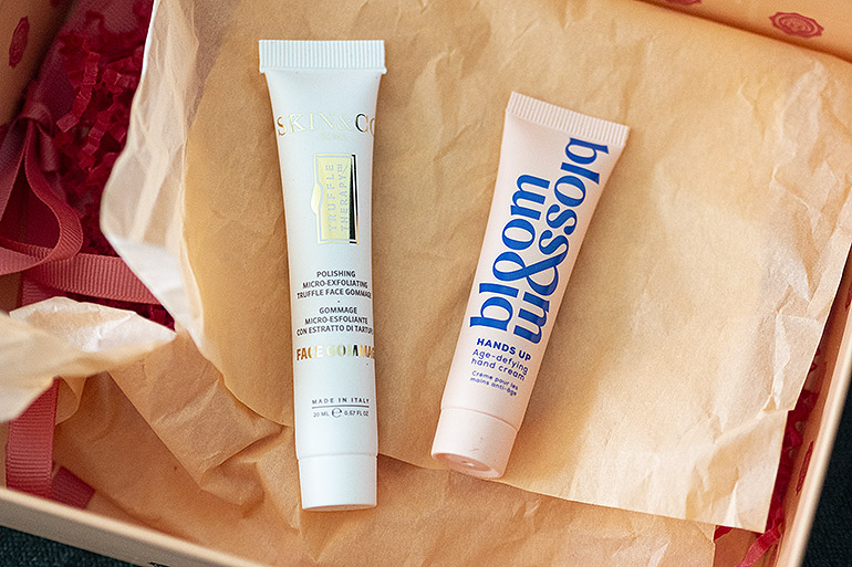 Bloom and Blossom Age-defying -käsivoide (21 € / 50ml, mukana 15ml) on seminopeasti (n. 5 min) imeytyvä käsivoide, joka sisältää mm. nikotiiniamidia, karitevoita ja lakritsinjuuriuutetta. Sen tuoksu tulee mm. bergamontista, rohtoilangia sekä seetripuusta ja jää tuoksumaan käsiin voiteen kuivumisen jälkeenkin. Omaan nenääni se istuu, mutta tuoksu on aavistuksen erilainen kuin mitä normaalisti käsivoiteisiin mieltäisi. Tämä jää työpöytärasvaksi nyt samoiten tein. Saatavilla *Lookfantasticilta.